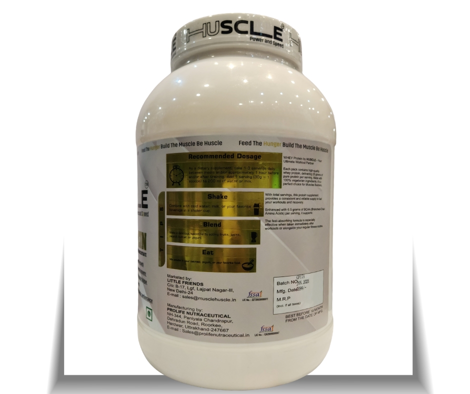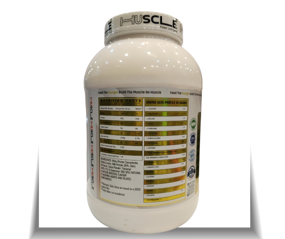 HUSCLE Whey Protein Concentrate is a high-quality protein supplement formulated to support lean muscle growth, faster recovery, and improved athletic performance. Powered with fast-absorbing whey protein and enriched with essential amino acids (EAA) and BCAA, it helps repair muscles after intense workouts and supports daily protein requirements.